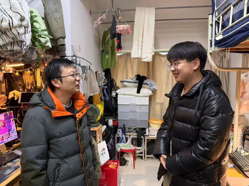 走访过程中,辅导员们与同学亲切交流,详细询问了大家的假期生活、返校适应情况及新学期课程安排,叮嘱同学们尽快调整作息,以饱满状态投入学习。同时,老师们重点对宿舍用电安全、卫生环境进行了细致检查,提醒大家务必遵守宿舍管理规定,杜绝违规电器,增强安全意识。