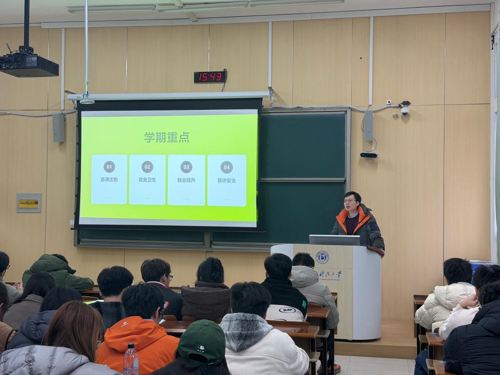 结合新学期学院的工作重点,陆震烁老师对新学期工作进行了详细部署:一是要抓好学风建设,营造积极向上的学习氛围;二是要精心策划开展主题鲜明、内容丰富、形式多样的班团活动,提升班级凝聚力;三是要加强班级日常管理,密切关注同学们的思想动态,畅通信息反馈渠道,做好老师的得力助手。